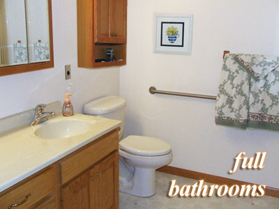 The bathrooms feature a 48 inch vanity, tri-fold mirrored medicine cabinet and 4 feet or 5 feet showers with built-in seats and grab bars.