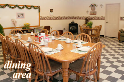 Our hall features several dining tables. Occasional meals are served throughout the year. During the day, the room can be reserved for family gatherings or celebrations.